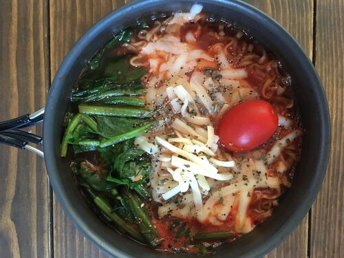 簡単ご飯第4弾!! いつもレシピを載せるまでも無いような、超簡単レシピですが… 今回も超簡単美味しい山ごはんを紹介します。 今回使うのは みんな大好きチキンラーメン!! チキンラーメンのアレンジレシピって沢山ありますが、 私の一番好きなイタリアン…